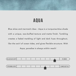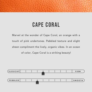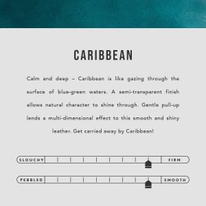 | Color | Aqua, Aquarius, Black, Cabo, Cape Coral, Caribbean, Chestnut, Chili Red, Cobalt, Cognac, Coldbrew, Cowboy Mint, Dakota, Deep Water, Foxglove, Grizzly, Honey, Jacaranda, Mamey, Mango, Meadow, Merlot, Nutmeg, Orchid, Pebbled–black, Reef, Ruby, Sunflower, Vanilla |